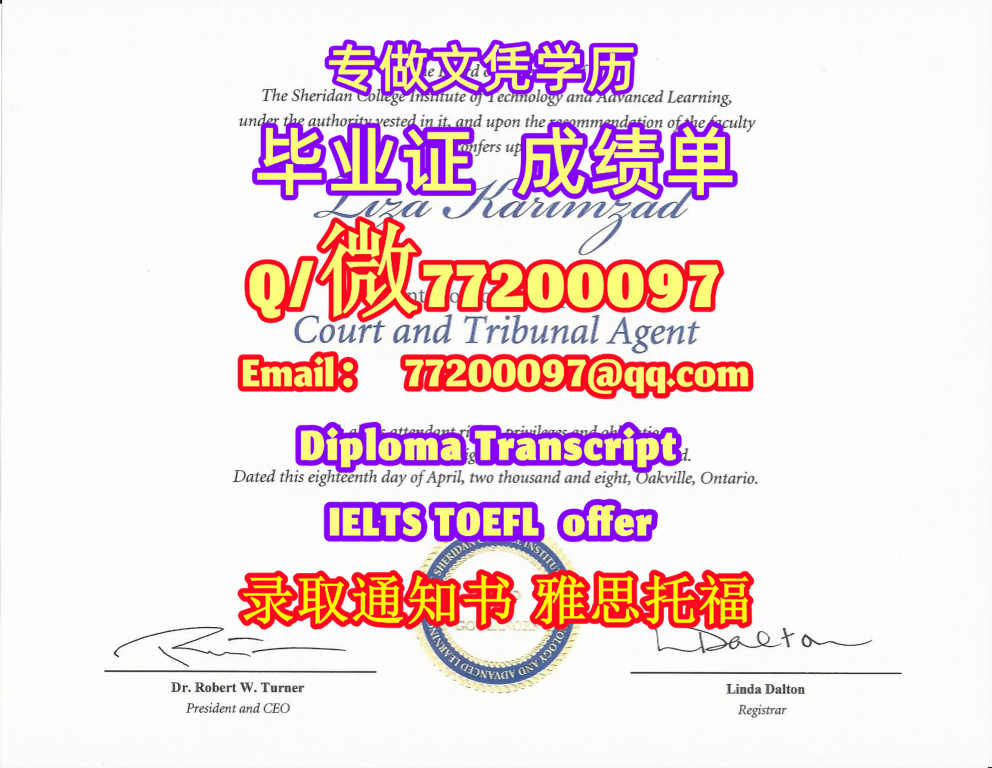 专业制作Sheridan毕业证书买谢尔丹学院毕业证成绩单Q/微:77200097有Sheridan文凭证书精仿Sheridan学位证书能办Sheridan成绩单制作雪尔顿学院文凭证书offer雅思托福Sheridan College Diploma Degree Transcript