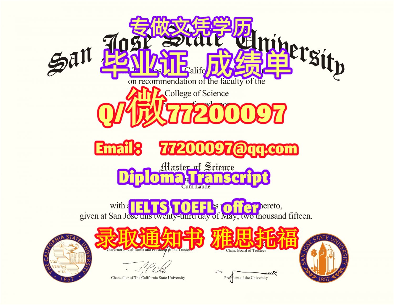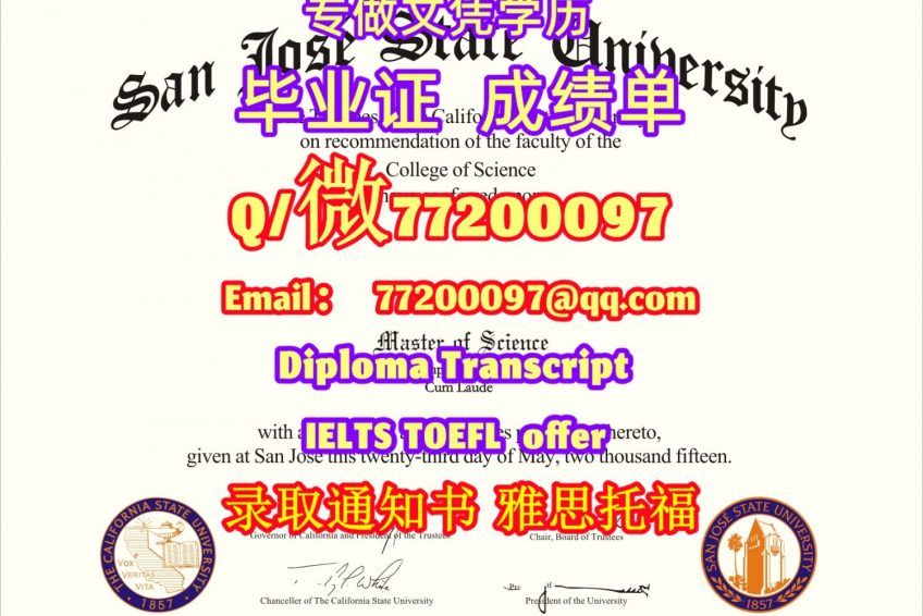 专业制作SJSU毕业证书买圣何塞州立大学毕业证成绩单Q/微:77200097有SJSU文凭证书精仿SJSU学位证书能办SJSU成绩单制作圣何塞州立大学文凭证书雅思托福San Jose State University Bachelor/Master Diploma Degree Transcript