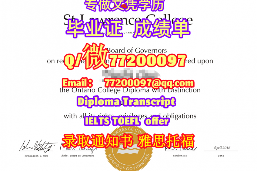 专业制作SLC毕业证书买圣劳伦斯学院毕业证成绩单Q/微:77200097有SLC文凭证书精仿SLC学位证书能办SLC成绩单制作圣劳伦斯学院文凭证书offer雅思托福St.Lawrence College Diploma Degree Transcript