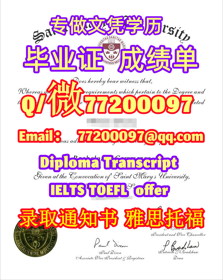 专业制作SMU毕业证书买圣玛丽大学毕业证成绩单Q/微:77200097有SMU文凭证书精仿SMU学位证书能办SMU成绩单制作圣玛丽大学文凭证书offer雅思托福Saint Mary’s University Diploma Degree Transcript