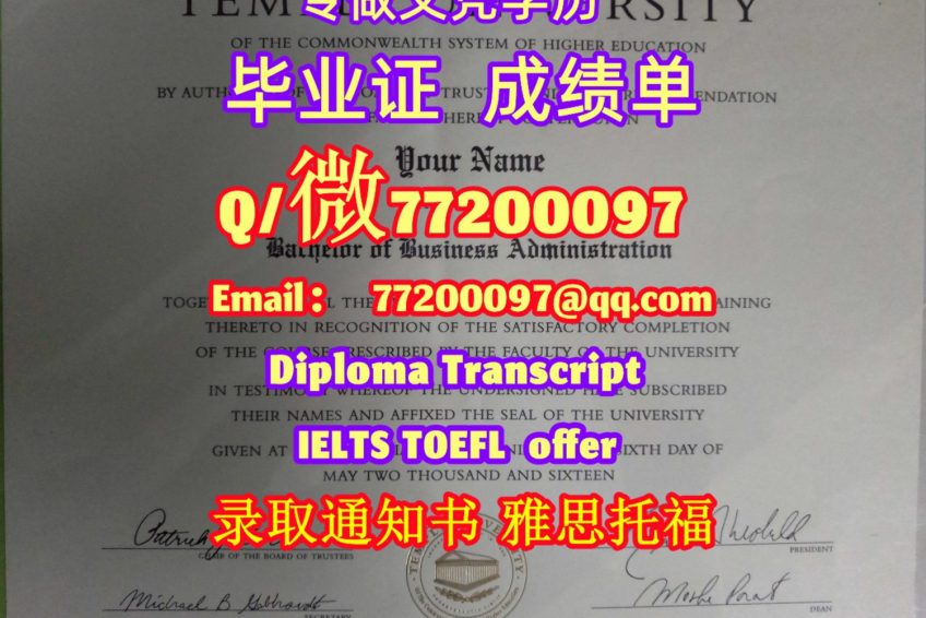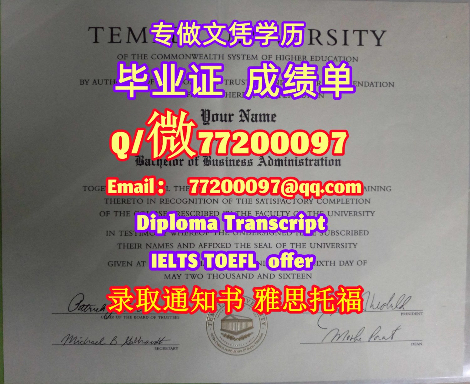 专业制作Temple毕业证书买天普大学毕业证成绩单Q/微:77200097有Temple文凭证书精仿Temple学位证书能办Temple成绩单制作天普大学文凭证书雅思托福Temple University Bachelor/Master Diploma Degree Transcript