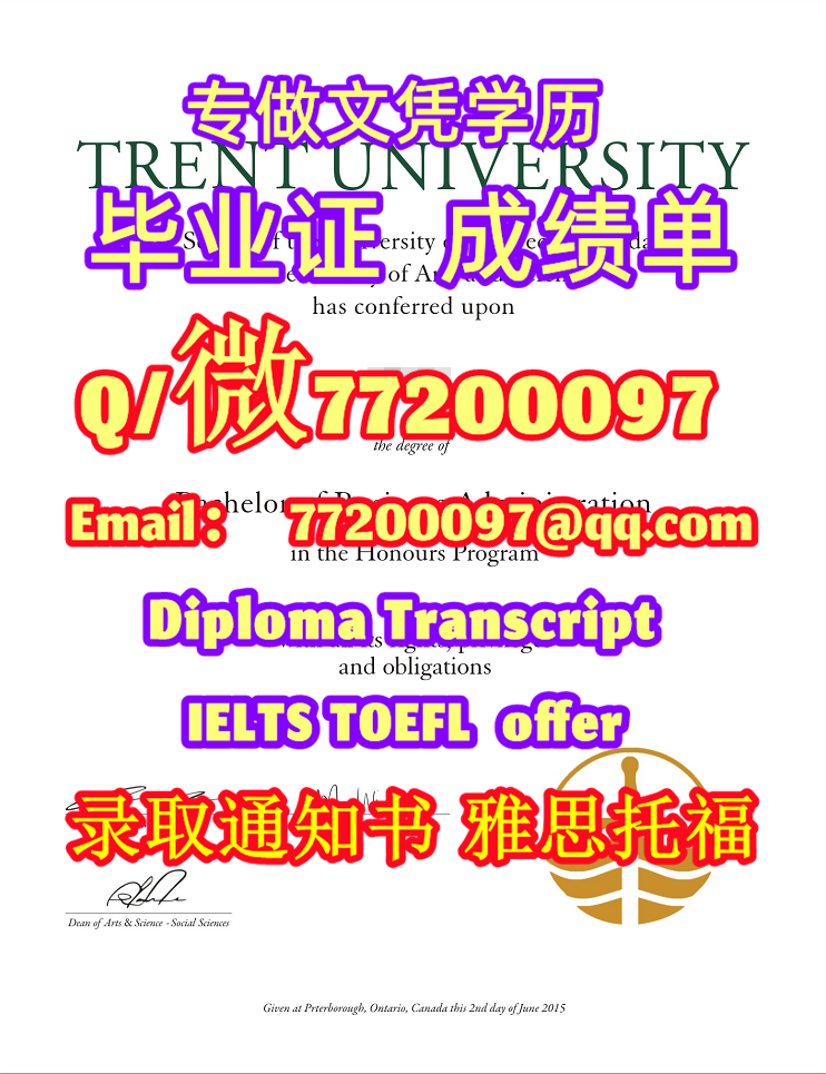 专业制作Trent U毕业证书买特伦特大学毕业证成绩单Q/微:77200097有Trent U文凭证书精仿Trent U学位证书能办Trent U成绩单制作川特大学文凭证书offer雅思托福Trent University Diploma Degree Transcript