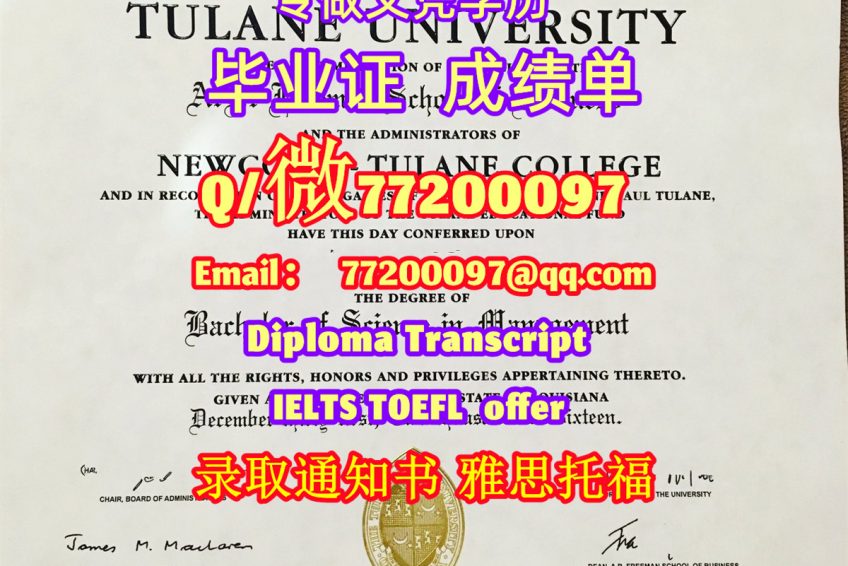 专业制作Tulane毕业证书买杜兰大学毕业证成绩单Q/微:77200097有Tulane文凭证书精仿Tulane学位证书能办Tulane成绩单制作杜兰大学文凭证书雅思托福Tulane University Bachelor/Master Diploma Degree Transcript