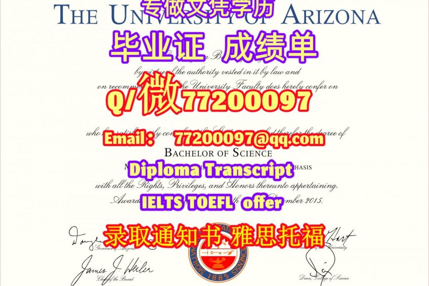 专业制作U-Arizona毕业证书买亚利桑那大学毕业证成绩单Q/微:77200097有UA文凭证书精仿U-Arizona学位证书能办U-Arizona成绩单制作亚利桑那大学文凭证书雅思托福University of Arizona Bachelor/Master Diploma Degree Transcript