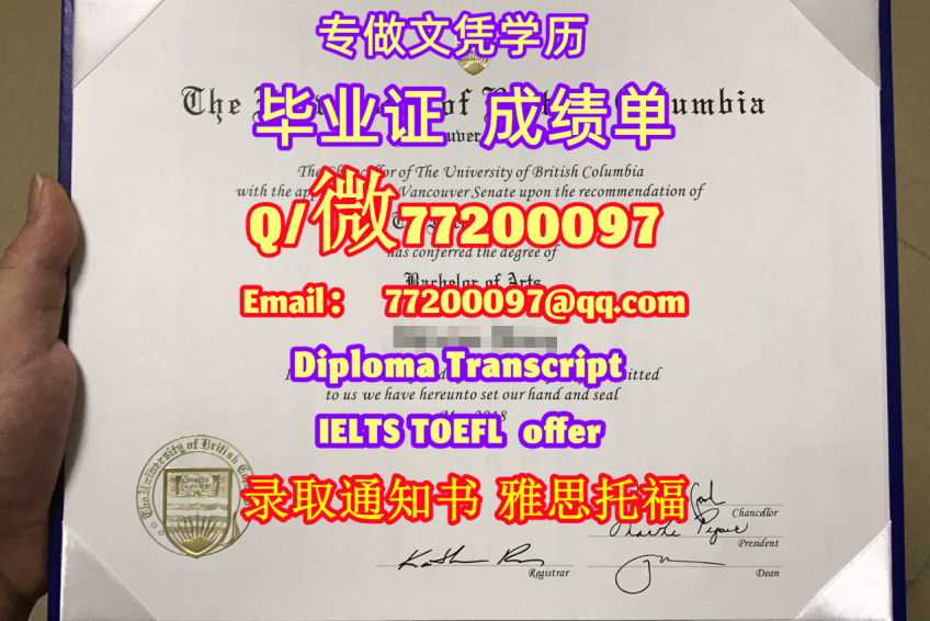专业制作UBC毕业证书买UBC毕业证成绩单Q/微:77200097有UBC文凭证书精仿UBC学位证书能办UBC成绩单制作英属哥伦比亚大学文凭证书offer雅思托福University of British Columbia Diploma Degree Transcript
