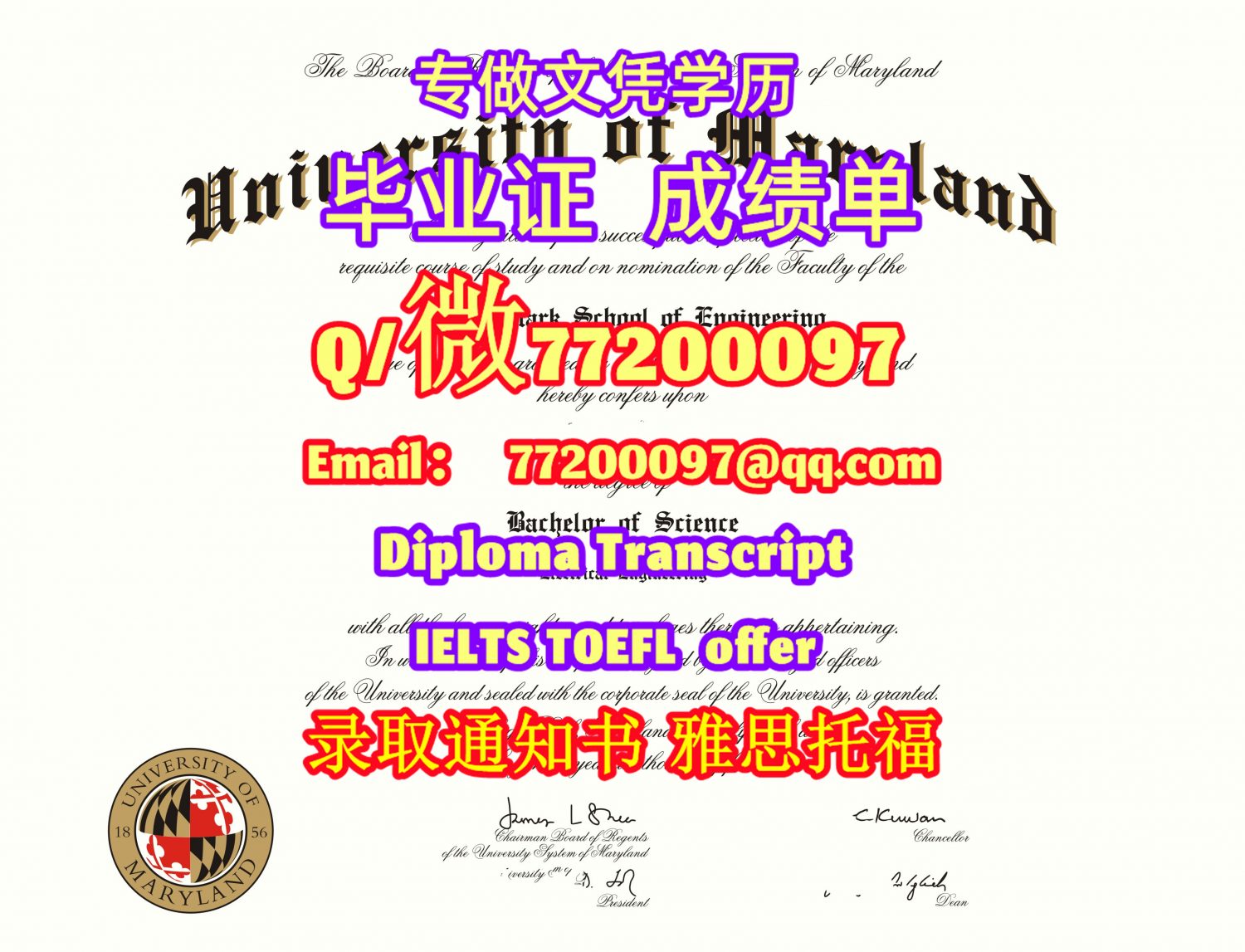 专业制作UMD毕业证书买马里兰大学毕业证成绩单Q/微:77200097有UMCP文凭证书精仿UMD学位证书能办UMD成绩单制作马里兰大学文凭证书雅思托福University of Maryland-College Park Bachelor/Master Diploma Degree Transcript