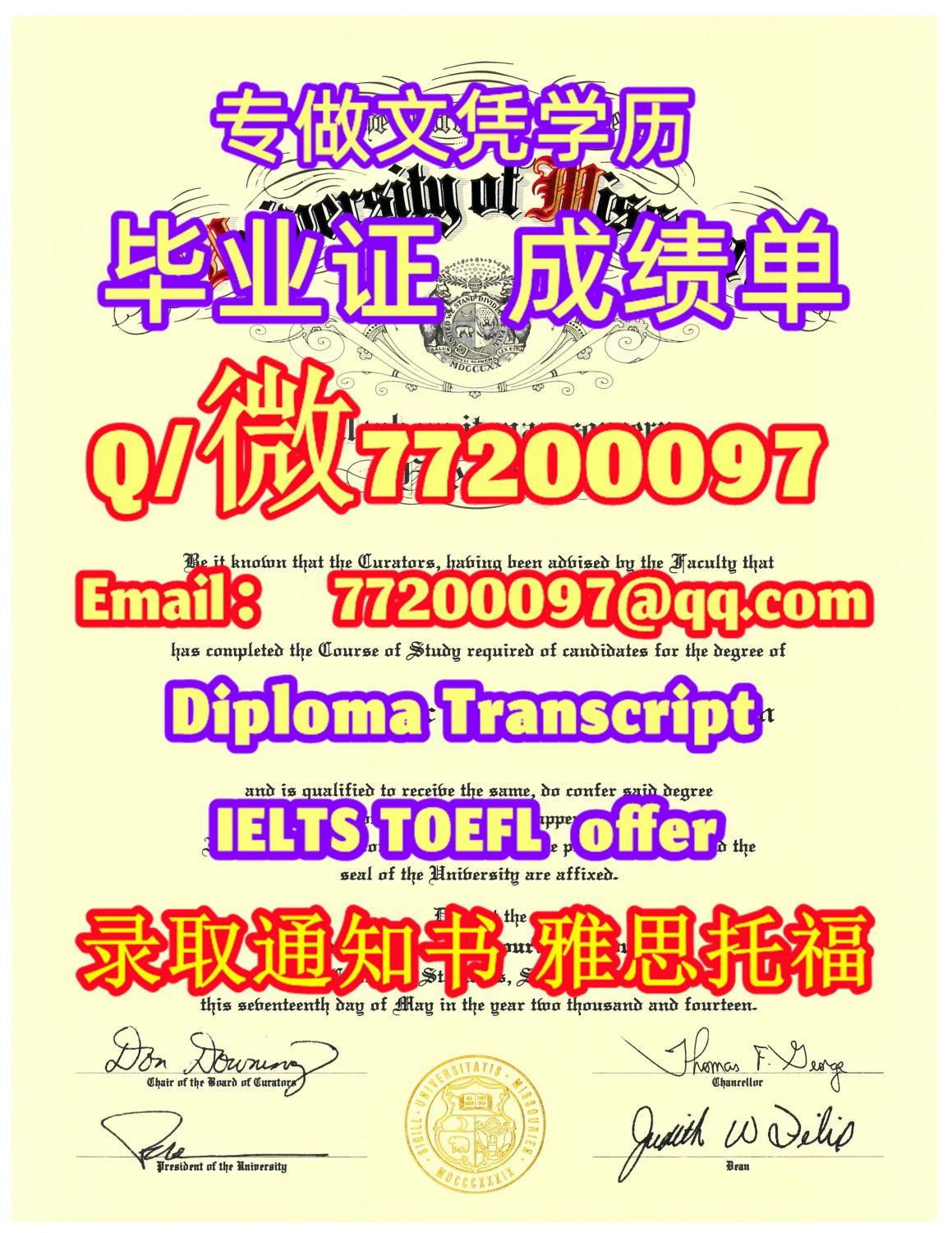 专业制作UMSL毕业证书买密苏里大学圣路易斯分校毕业证成绩单Q/微:77200097