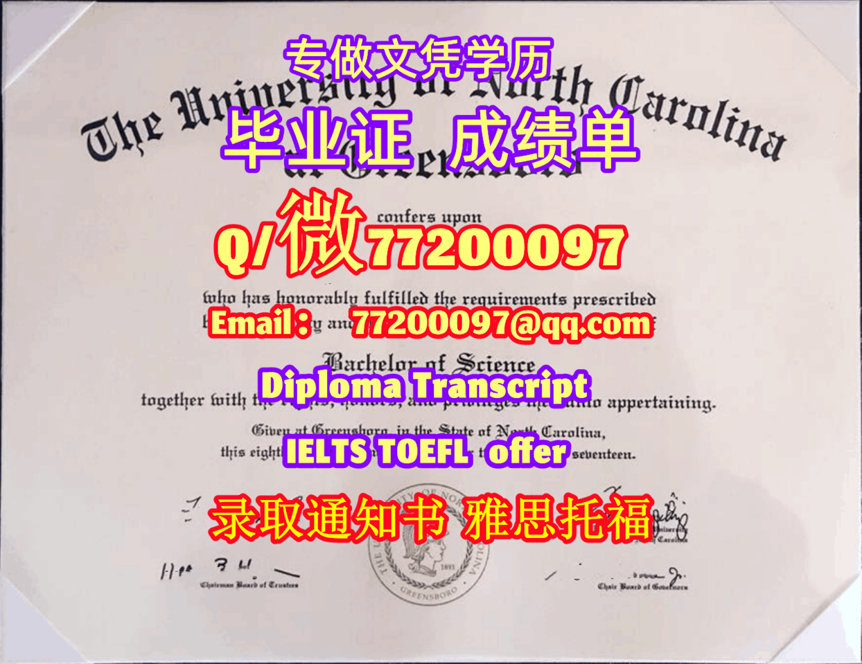 专业制作UNCG毕业证书买北卡大学格林波若分校毕业证成绩单Q/微:77200097有UNCG文凭证书精仿UNCG学位证书能办UNCG成绩单制作北卡罗来纳大学格林波若分校文凭证书雅思托福University of North Carolina,Greensboro Bachelor/Master Diploma Degree Transcript