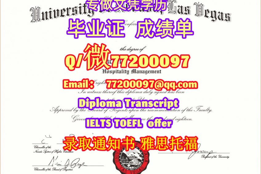 专业制作UNLV毕业证书买拉斯维加斯大学毕业证成绩单Q/微:77200097有UNLV文凭证书精仿UNLV学位证书能办UNLV成绩单制作内华达大学拉斯维加斯分校文凭证书雅思托福University of Nevada Las Vegas Bachelor/Master Diploma Degree Transcript