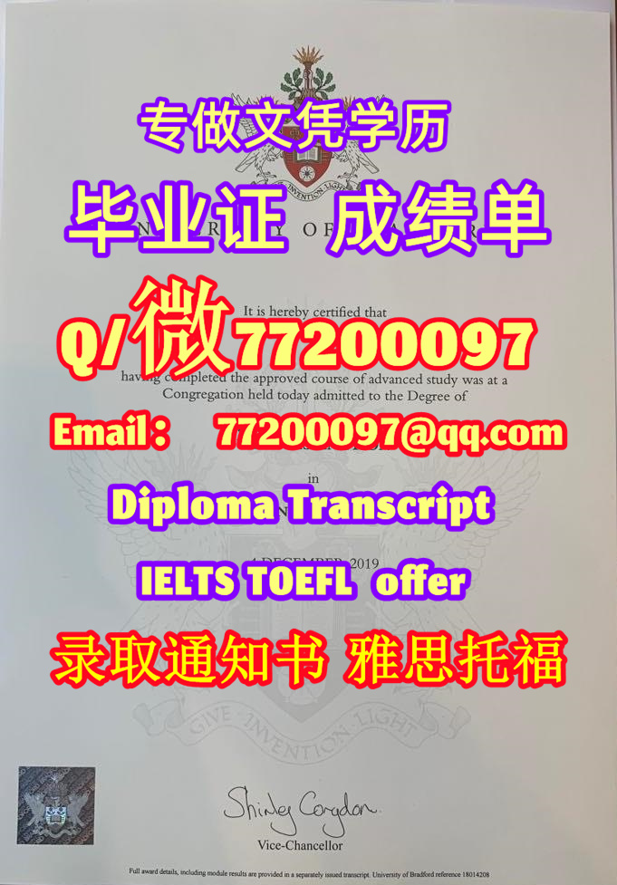 专业制作UoB毕业证书买布拉德福德大学毕业证成绩单Q/微:77200097有UoB文凭证书精仿UoB学位证书能办UoB成绩单制作布拉德福德大学文凭证书雅思托福University of Bradford Diploma Degree Transcript