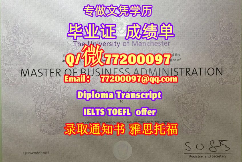 专业制作UoM毕业证书买曼彻斯特大学毕业证成绩单Q/微:77200097有UoM文凭证书精仿UoM学位证书能办UoM成绩单制作曼彻斯特大学文凭证书雅思托福The University of Manchester Diploma Degree Transcript