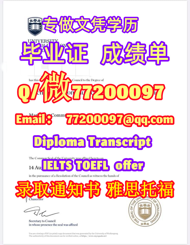 专业制作UOW毕业证书买卧龙岗大学毕业证成绩单Q/微:77200097有UOW文凭证书精仿UOW学位证书能办UOW成绩单制作卧龙岗大学文凭证书offerUniversity of Wollonglong Diploma Degree Transcript