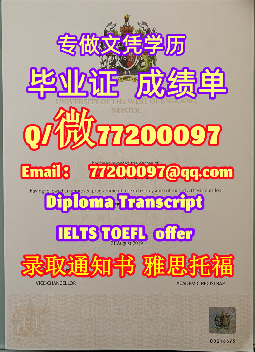 专业制作UWE毕业证书买西英格兰大学毕业证成绩单Q/微:77200097有UWE文凭证书精仿UWE学位证书能办UWE成绩单制作西英格兰大学文凭证书雅思托福University of the West of England Diploma Degree Transcript
