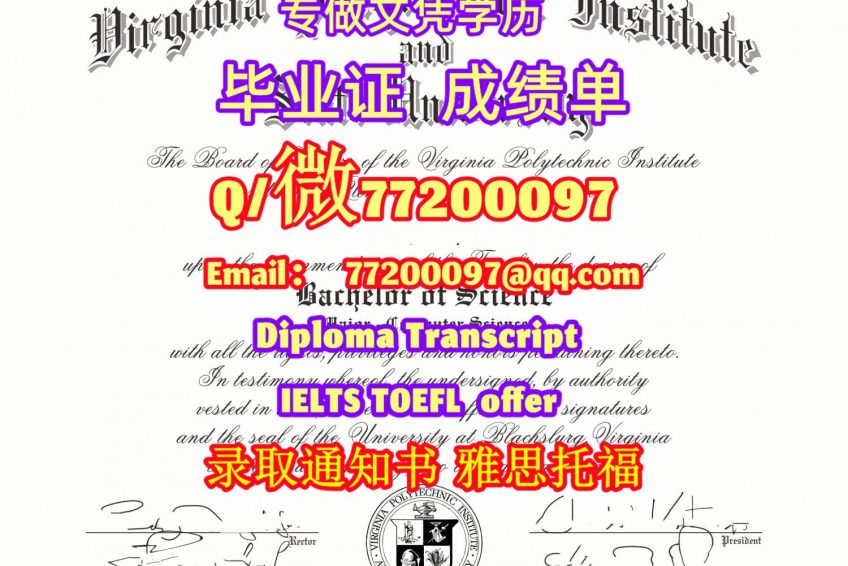 专业制作VT毕业证书买弗吉尼亚理工大学毕业证成绩单Q/微:77200097有VT文凭证书精仿Virginia Tech学位证书能办VT成绩单制作弗吉尼亚理工大学文凭证书雅思托福Virginia Polytechnic Institute and State University Bachelor/Master Diploma Degree Transcript