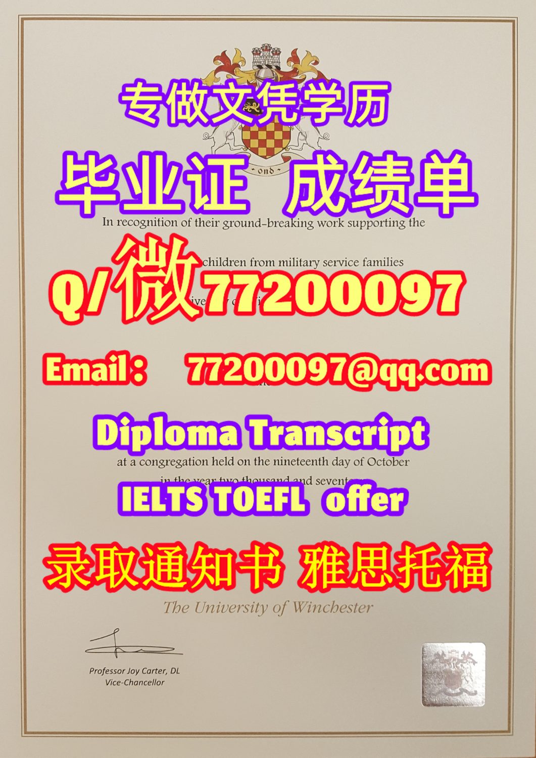专业制作Winchester毕业证书买温切斯特大学毕业证成绩单Q/微:77200097有Winchester文凭证书精仿Winchester学位证书能办Winchester成绩单制作温切斯特大学文凭证书雅思托福The University of Winchester Diploma Degree Transcript