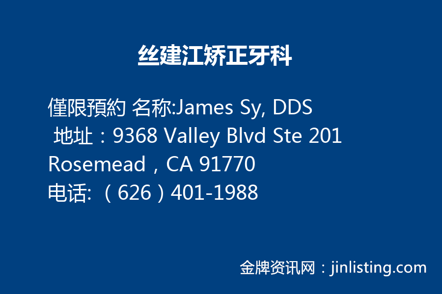 医院(诊所)名称:James Sy,DDS 牙科,矫正仅限预约