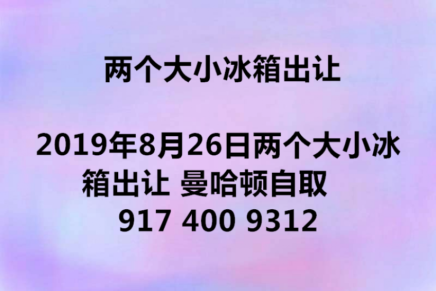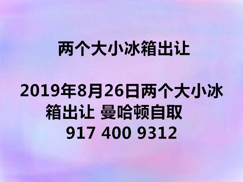 两个大小冰箱出让 曼哈顿自取 917 400 9312