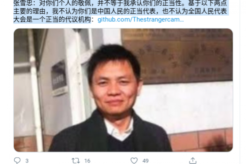 重磅! 张雪忠教授给两会代表的一封公开信 全国人大和政协都是非法组织,两会代表都是伪代表