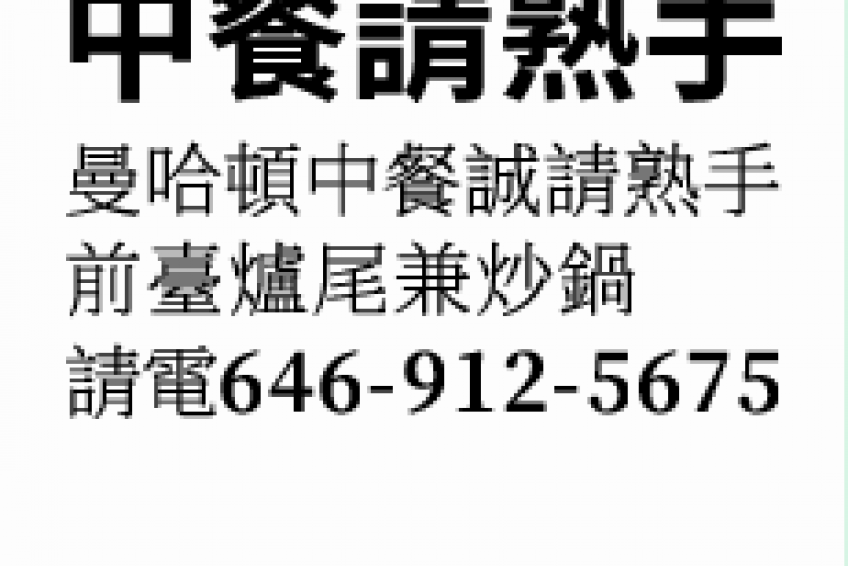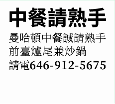 曼哈頓中餐誠請熟手