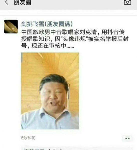 许多网友留言中提到习近平的名字,触发网络敏感词,加上他个人的头像太像习近平遭人举报,结果让他的影片被作为“敏感话题”,惨遭抖音封锁。由于当时,临近中共十一国殇日,刘克清似乎也认了,岂料之后又多次被封号。