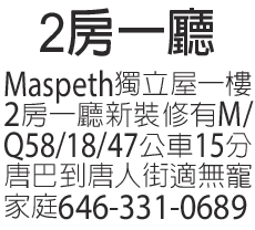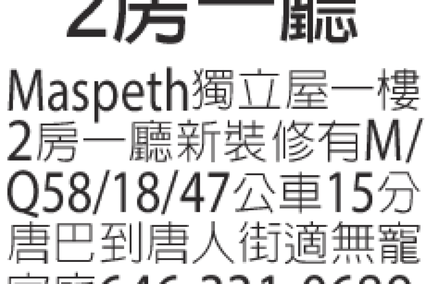 皇后區 maSpeth二房一廳獨立屋一樓租新裝修有M/Q58/18/47公車15分鐘唐巴到唐人街適無寵家㝚電646-3310689