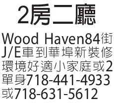 Wood haven84街JE車到華埠新裝修環境好適小家庭或二單身電718-441-4933.718-631-5612