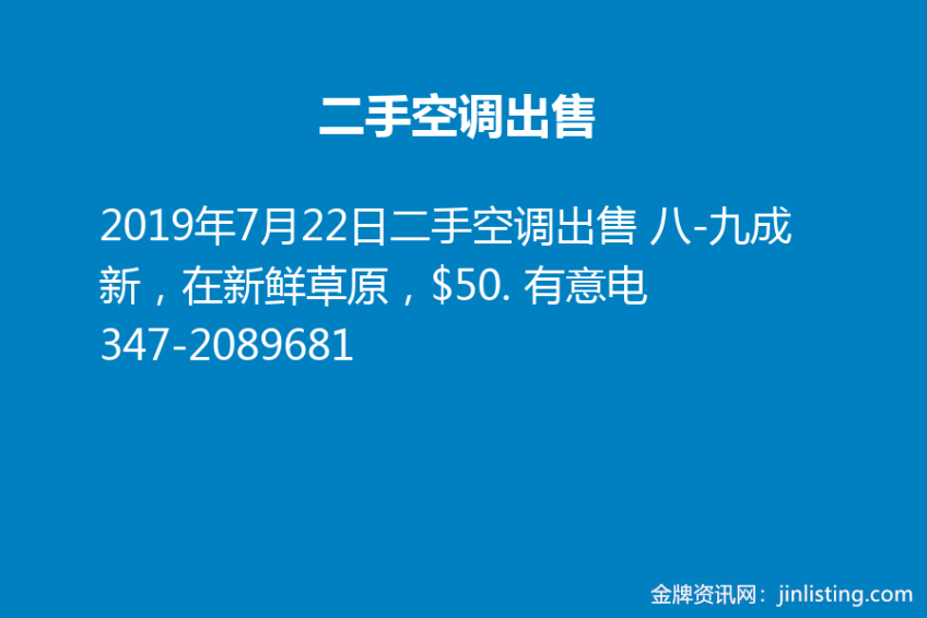 二手空调出售 八-九成新,在新鲜草原,$50. 有意电347-2089681