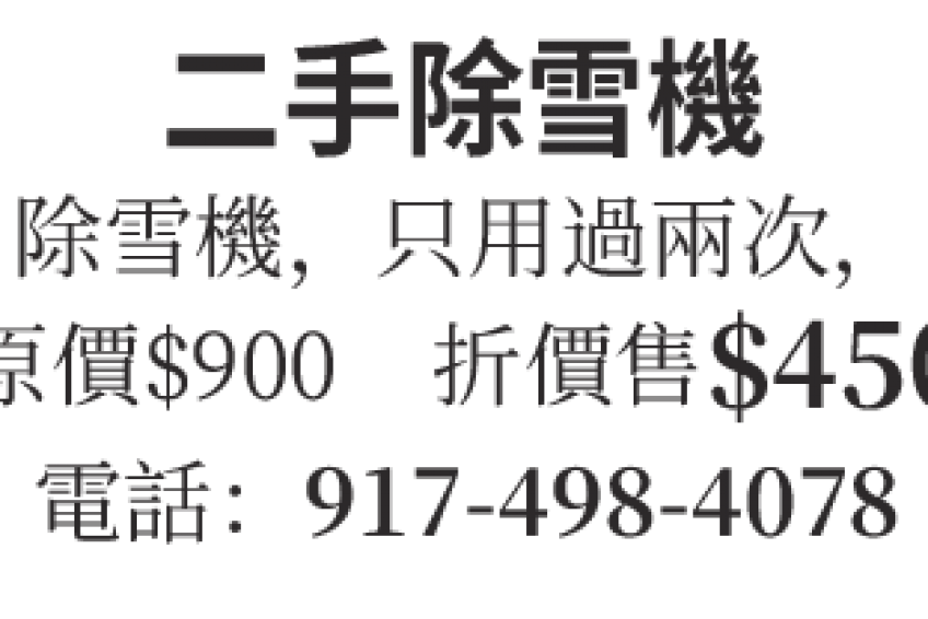 除雪機,原價900買的,只用過兩次,折價450出售。