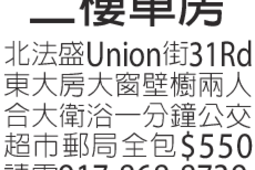 北法拉盛Union st 交 31rd 東大房大窗壁櫥,兩人合大衛浴。一分鐘公交超市郵局。全包$550電917-868-8739