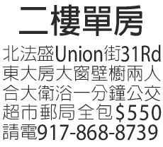 二樓單房 917-868-8739