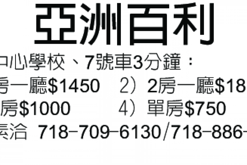 法盛中心學校、7號車3分鐘:1)一房一廳$1450 2)2房1廳$1850