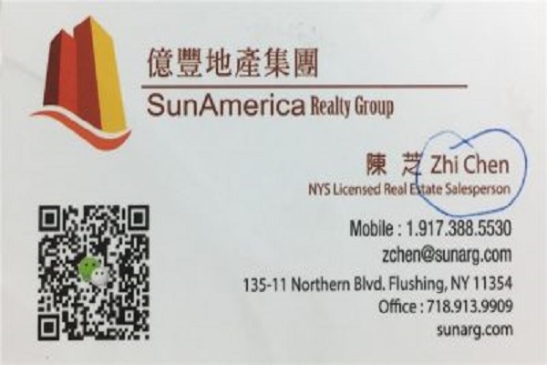 Zhi Chen NYS Licensed Real E tate Salesperson Mobile : 1.917.388.5530 zchen@sunarg.com 135-11 Northern Blvd. Flushing, NY 11354 Office : 718.913.9909 sunarg.com