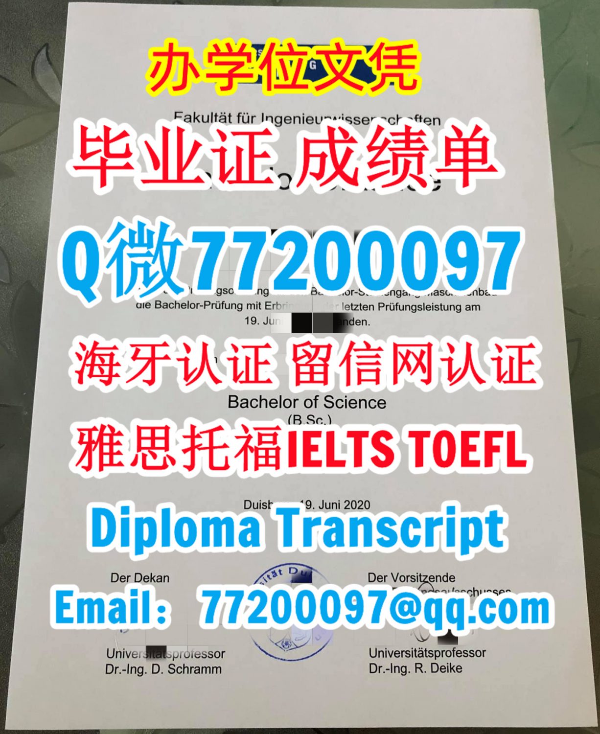 今年国外毕业证成绩单德国-Uni DuE毕业证成绩单,Q/微:77200097专做杜伊斯堡-埃森大学毕业证书,办理Uni DuE 学位证书制作Uni DuE文凭证书Universität Duisburg-Essen Undergraduate Diploma Degree