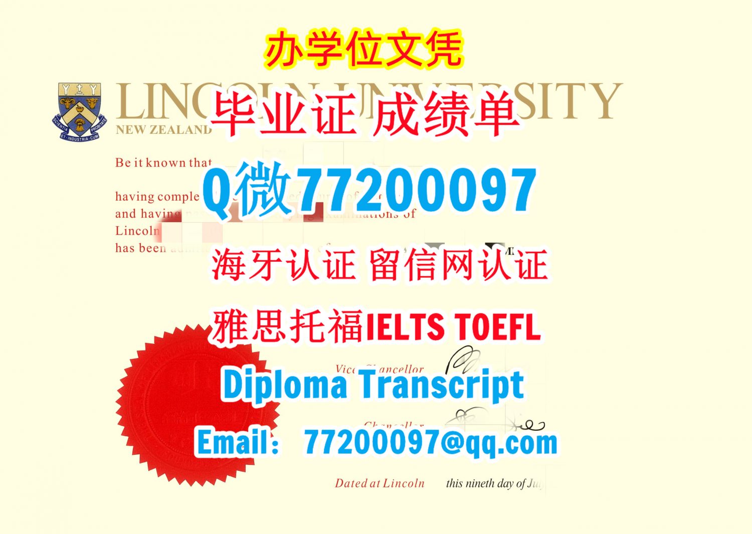 今年国外毕业证成绩单新西兰林肯大学毕业证成绩单,Q/微:77200097专做林肯大学毕业证书,#雅思托福学历学位认证/offer Lincoln University Undergraduate diploma