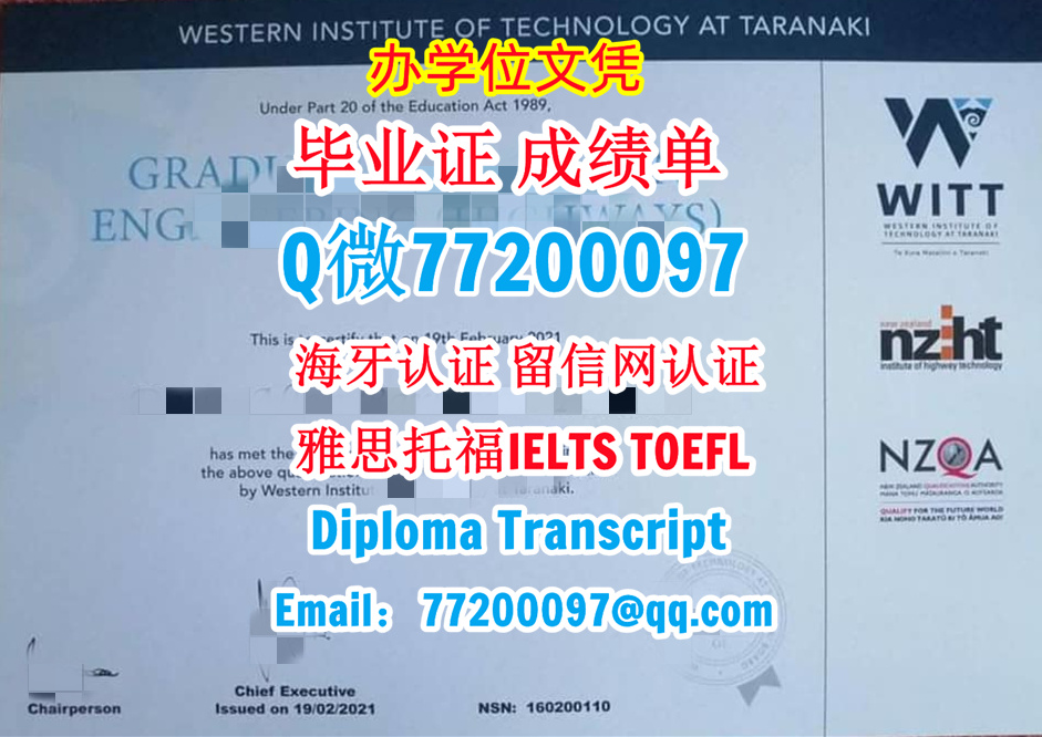 今年国外毕业证成绩单新西兰西方理工学院(WITT)毕业证成绩单,Q/微:77200097专做西方理工学院毕业证书,#雅思托福学历学位认证/offer Western Institute of Technology at Taranaki Undergraduate diploma