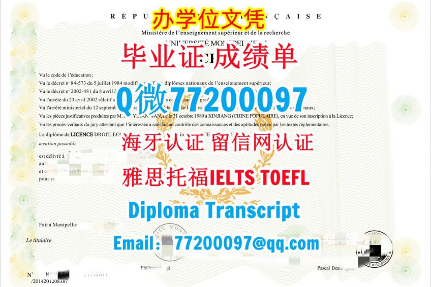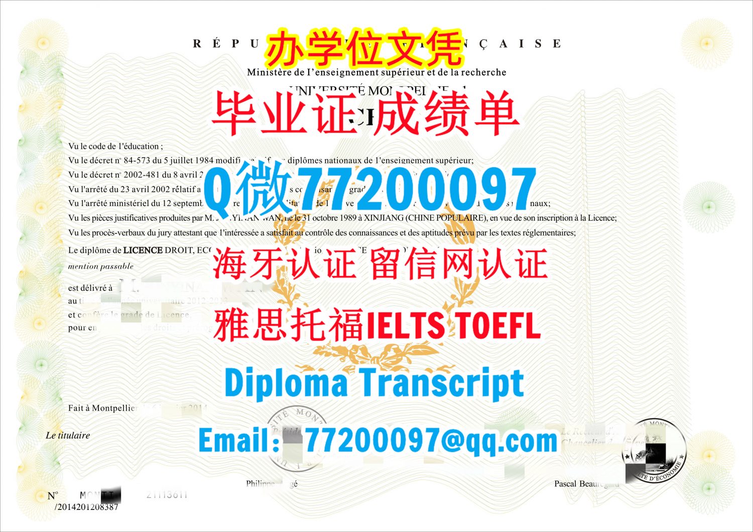 今年国外毕业证成绩单法国de Montpellier毕业证成绩单,Q/微:77200097专做蒙彼利埃第二大学毕业证书,de Montpellier 学位证书制作de Montpellier毕业证成绩单,Q/微:77200097专做Q/微:77200097Université Paul-Valéry Montpellier 3 Undergraduate Diploma Degree Transcript