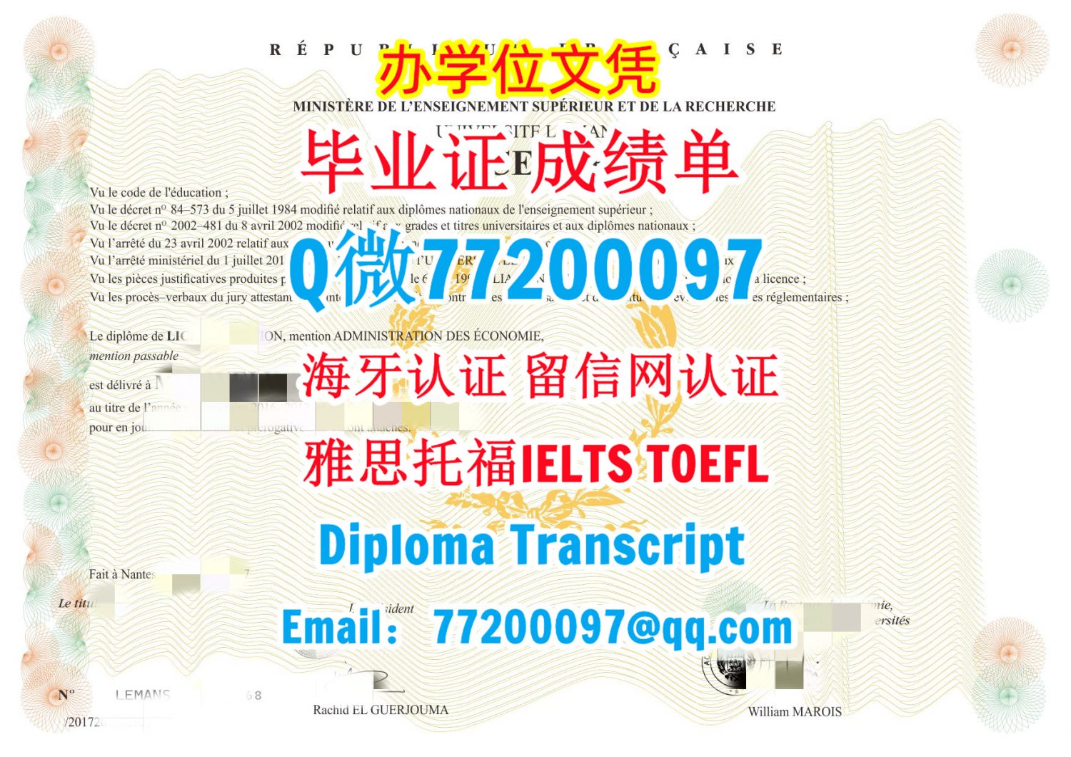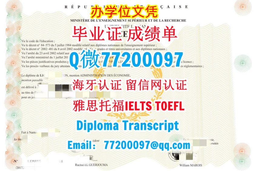 今年国外毕业证成绩单法国du Mans毕业证成绩单,Q/微:77200097专做勒芒大学毕业证书,du Mans 学位证书制作du Mans毕业证成绩单,Q/微:77200097专做Q/微:77200097Université du Mans Undergraduate Diploma Degree Transcript