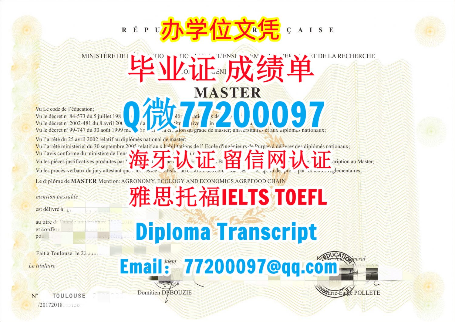 今年国外毕业证成绩单法国ESAP毕业证成绩单,Q/微:77200097专做普尔潘工程师学校毕业证书,ESAP 学位证书制作ESAP毕业证成绩单,Q/微:77200097专做Q/微:77200097École d’ingénieurs de Purpan Undergraduate Diploma Degree Transcript