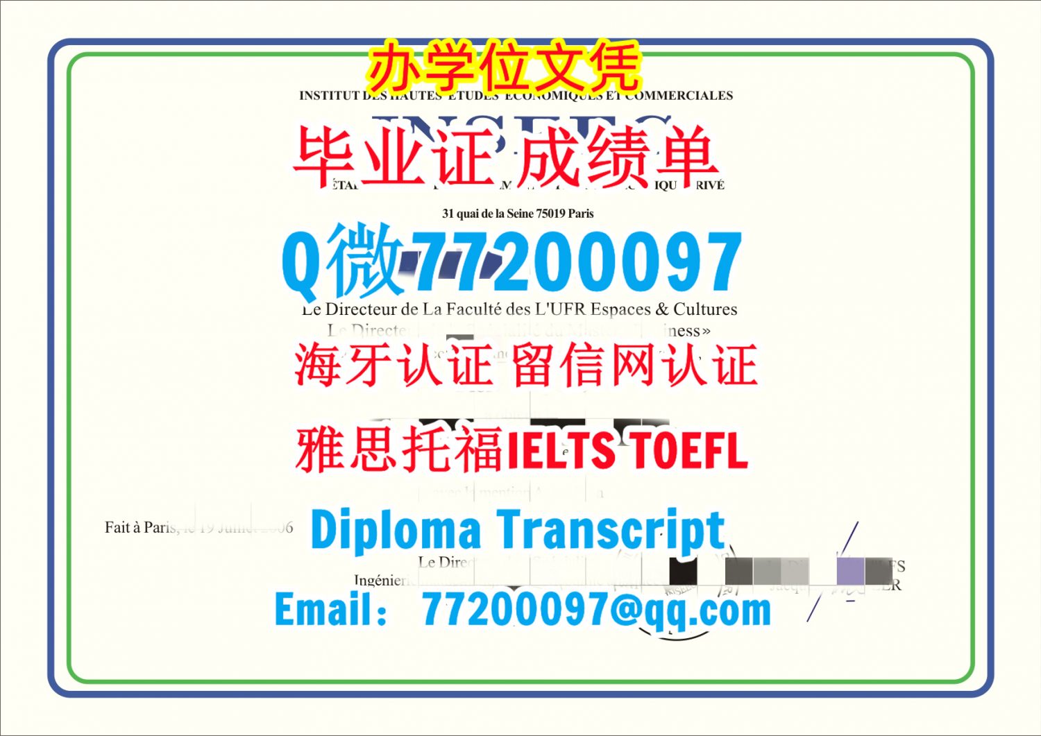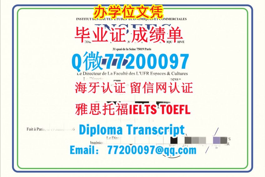 今年国外毕业证成绩单法国INSEEC毕业证成绩单,Q/微:77200097专做英赛克高等商学院毕业证书,INSEEC 学位证书制作INSEEC毕业证成绩单,Q/微:77200097专做Q/微:77200097Institut des Hautes Etudes Economiques et Commerciales Undergraduate Diploma Degree Transcript