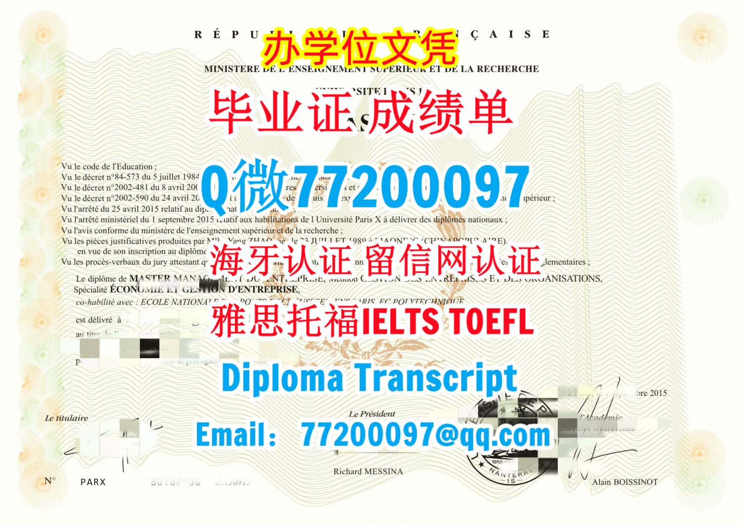 今年国外毕业证成绩单法国Paris10毕业证成绩单,Q/微:77200097专做巴黎第十大毕业证书,Paris10 学位证书制作Paris10毕业证成绩单,Q/微:77200097专做Q/微:77200097Université de Paris10 Ouest Nanterrela Défense Undergraduate Diploma Degree Transcript