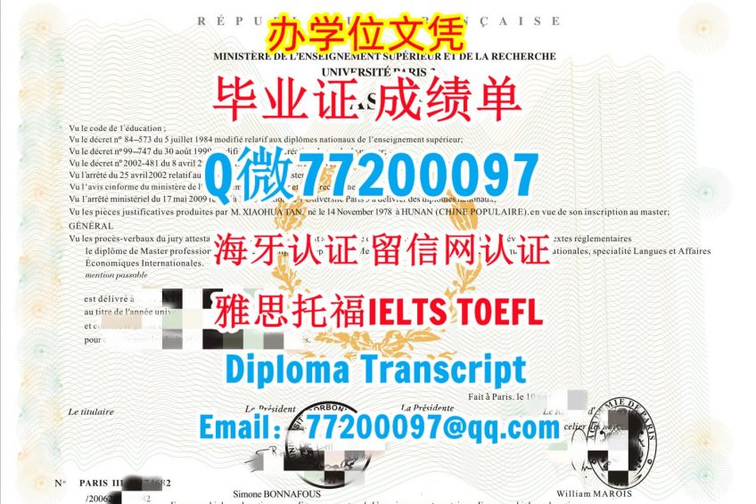 今年国外毕业证成绩单法国paris3毕业证成绩单,Q/微:77200097专做巴黎第三大毕业证书,paris3 学位证书制作paris3毕业证成绩单,Q/微:77200097专做Q/微:77200097Université de Paris 3 Sorbonne Nouvelle Undergraduate Diploma Degree Transcript