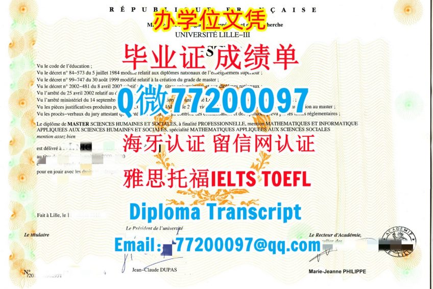 今年国外毕业证成绩单法国UJML3毕业证成绩单,Q/微:77200097专做里昂第三大学毕业证书,UJML3 学位证书制作UJML3毕业证成绩单,Q/微:77200097专做Q/微:77200097Université Lyon 3 Jean Moulin Undergraduate Diploma Degree Transcript