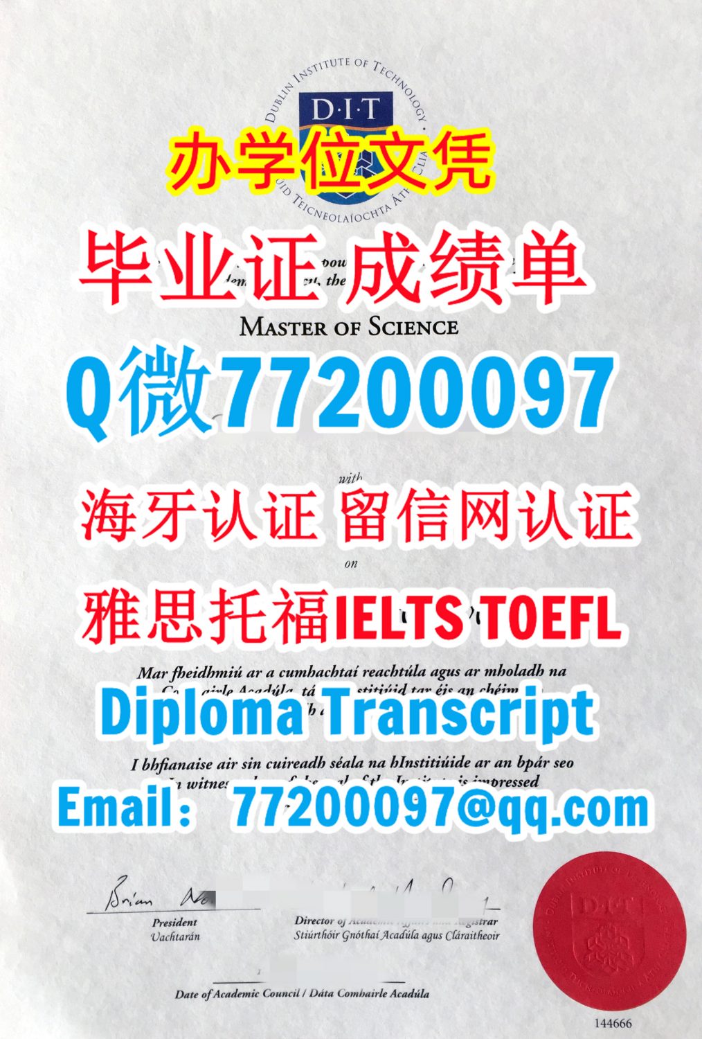 今年国外毕业证成绩单爱尔兰DIT毕业证成绩单,Q/微:77200097专做都柏林理工学院毕业证书,DIT学位证书制作Dublin Institute of Technology Undergraduate Diploma Degree Transcript
