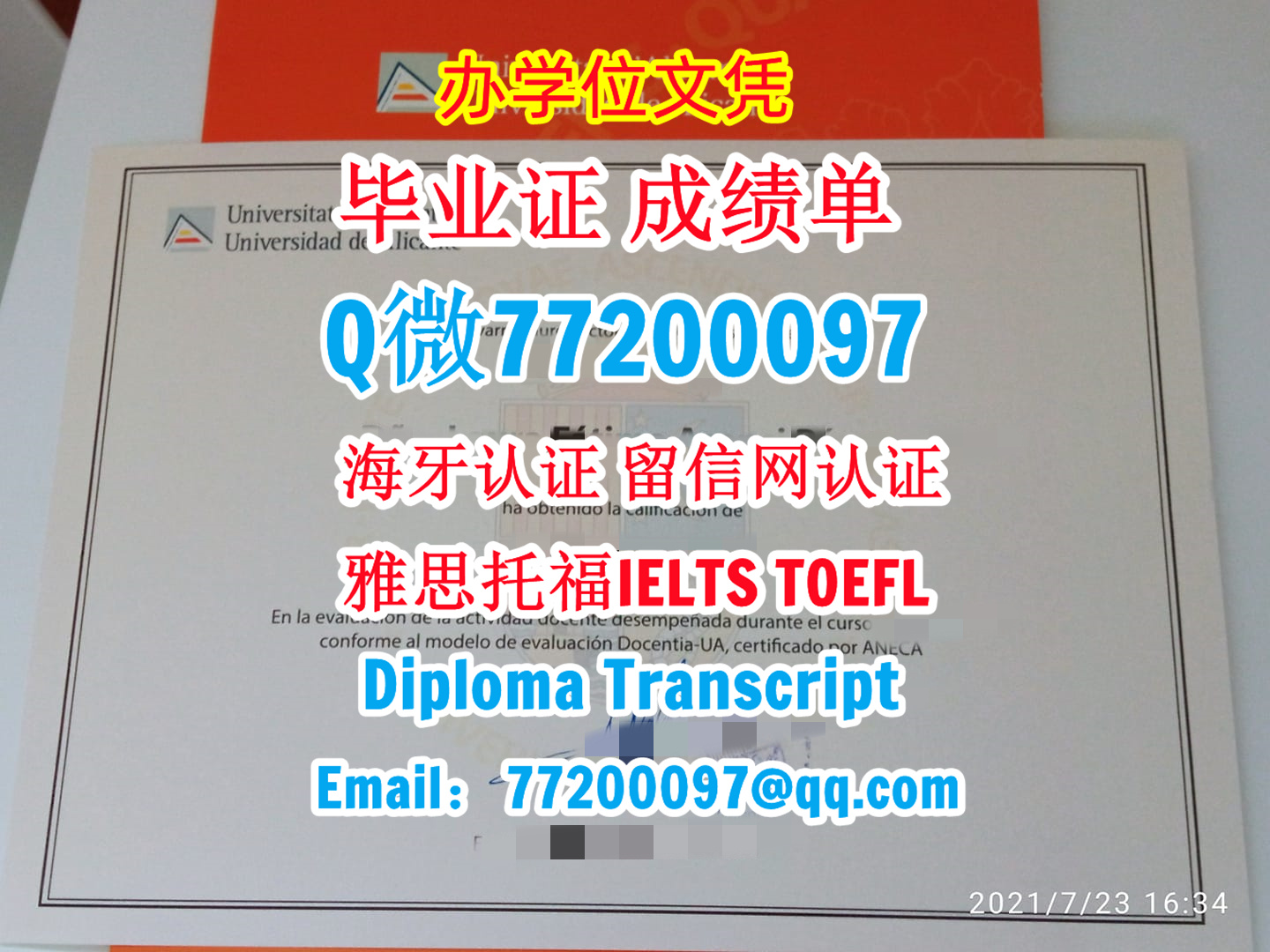 今年国外毕业证成绩单西班牙Alicante毕业证成绩单,Q/微:77200097专做阿利坎特大学毕业证书,Alicante学位证书制作Universidad de Alicante Undergraduate Diploma Degree Transcript