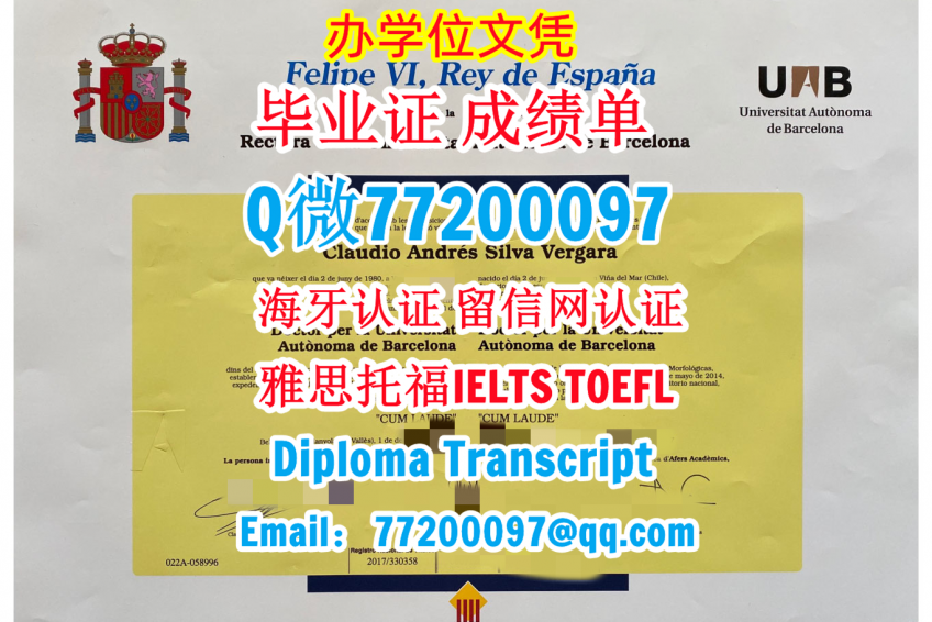 今年国外毕业证成绩单西班牙UAB毕业证成绩单,Q/微:77200097专做巴塞罗那自治大学毕业证书,UAB学位证书制作Universitat Autònoma de Barcelona Undergraduate Diploma Degree Transcript