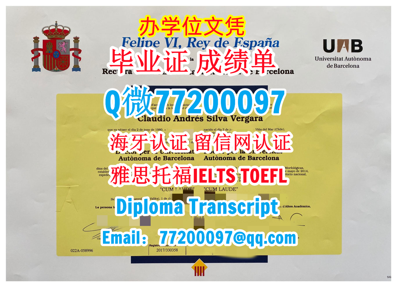 今年国外毕业证成绩单西班牙UAB毕业证成绩单,Q/微:77200097专做巴塞罗那自治大学毕业证书,UAB学位证书制作Universitat Autònoma de Barcelona Undergraduate Diploma Degree Transcript