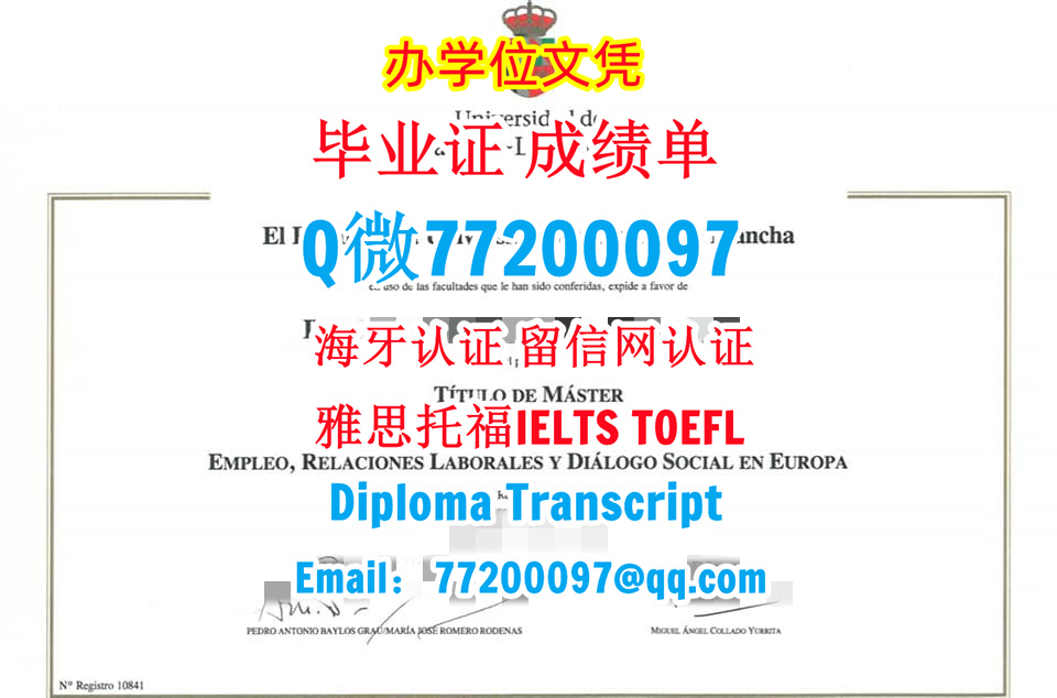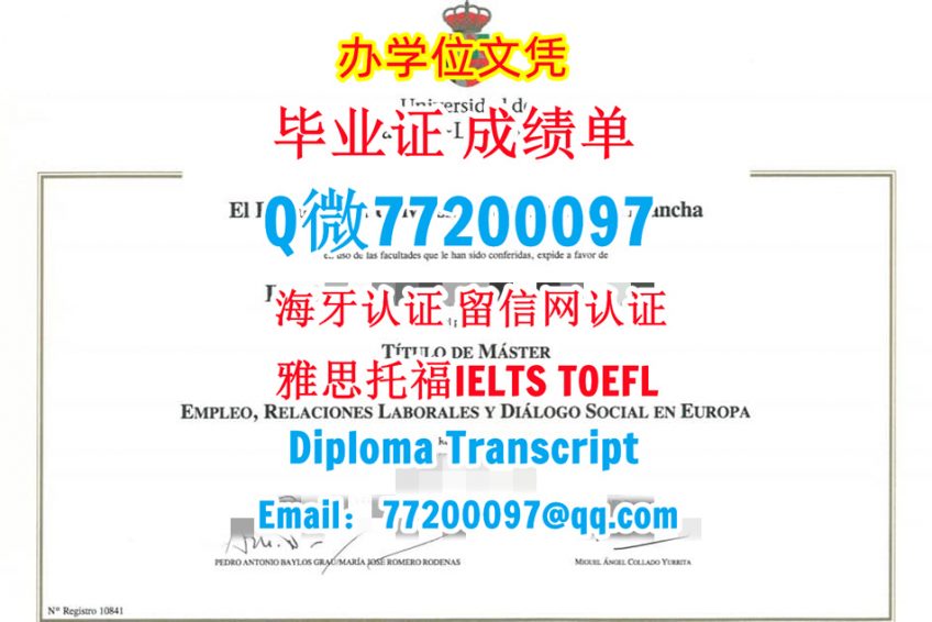 今年国外毕业证成绩单西班牙UCLM毕业证成绩单,Q/微:77200097专做卡斯蒂利亚拉曼却大学毕业证书,UCLM学位证书制作Universidad Castilla-La Mancha Undergraduate Diploma Degree Transcript