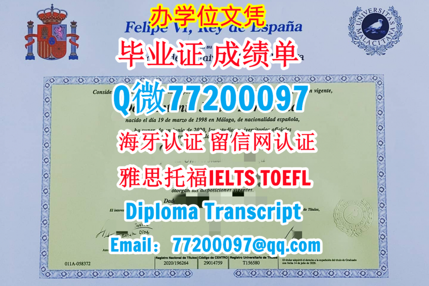今年国外毕业证成绩单西班牙UMA毕业证成绩单,Q/微:77200097专做马拉加大学毕业证书,UMA学位证书制作Universidad de Málaga Undergraduate Diploma Degree Transcript