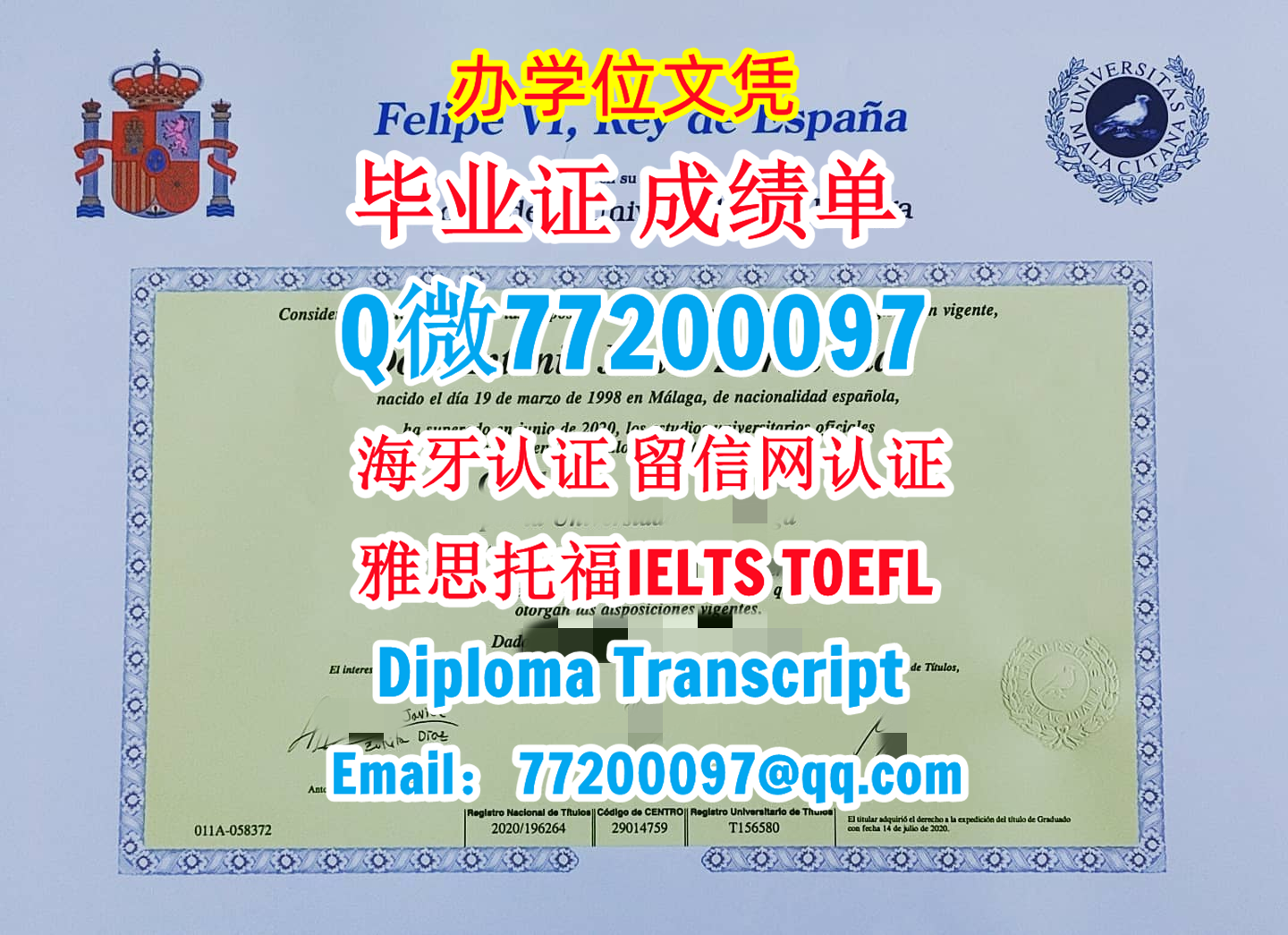 今年国外毕业证成绩单西班牙UMA毕业证成绩单,Q/微:77200097专做马拉加大学毕业证书,UMA学位证书制作Universidad de Málaga Undergraduate Diploma Degree Transcript