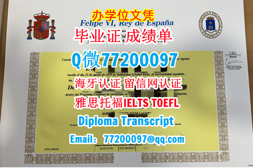 今年国外毕业证成绩单西班牙UPM毕业证成绩单,Q/微:77200097专做马德里理工大学毕业证书,UPM学位证书制作Universidad Politécnica de Madrid Undergraduate Diploma Degree Transcript